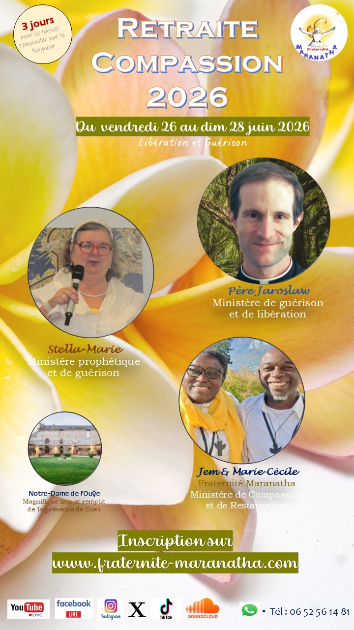 Née en 2004 en région parisienne, La Fraternité Maranatha a pour vocation la Compassion et la Restauration.